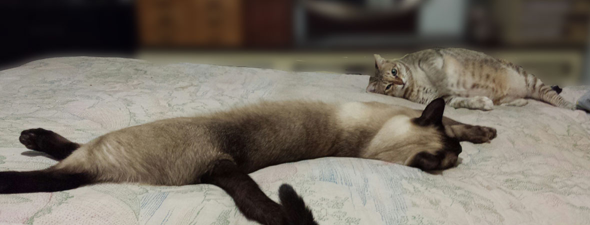 A la Pension, espace neutre, loin de leur territoire familiale, les chats ne développent pas d’agressivité entre eux.